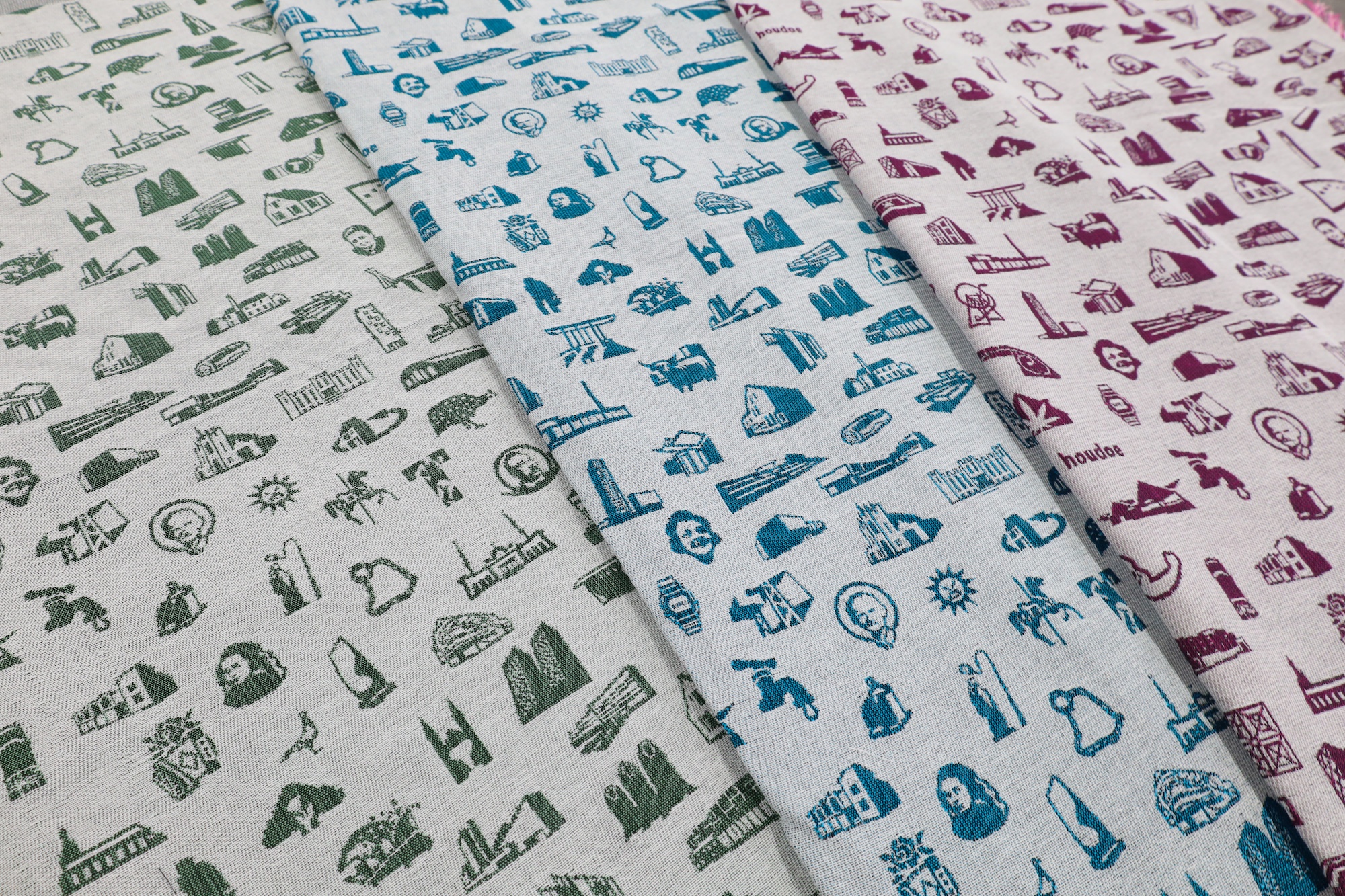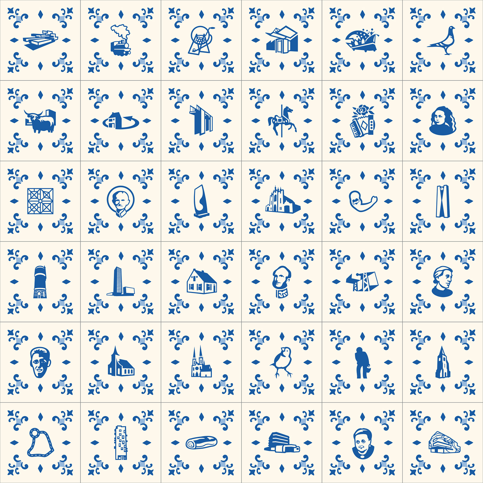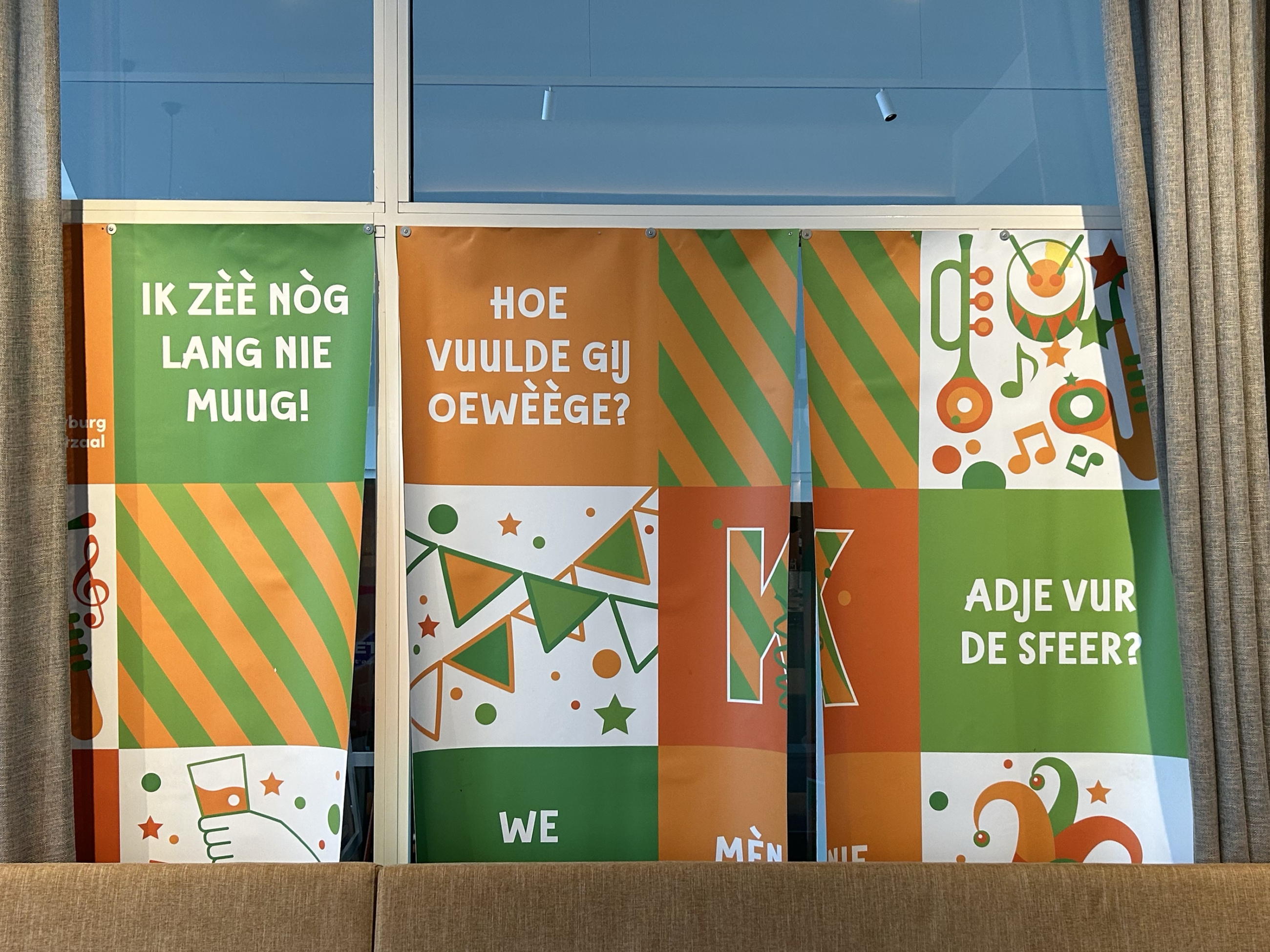 The TextielMuseum uses the icons of TilburgsAns in woven tissues. These tissues are sold in the TextielShop since february. In a week and a half they were sold out. A nice cushion was one of the products made with this fabric. Surprising were also the tiles with icons that were made for the bar Ome Ollie. And what to think of the macaroons by Cake 5 made for the carnival days on which the palace and the opstoet were printed, the sneakers with the kruikenzeiker, the carnival posters typeset in TilburgsAns, the tattoo of the section sign, and the website of Wijkkrant Tilburg. Icons as well as type of TilburgsAns was used for the Dialog Tree and the coffee mugs of the Interreligious Dialog Tilburg.