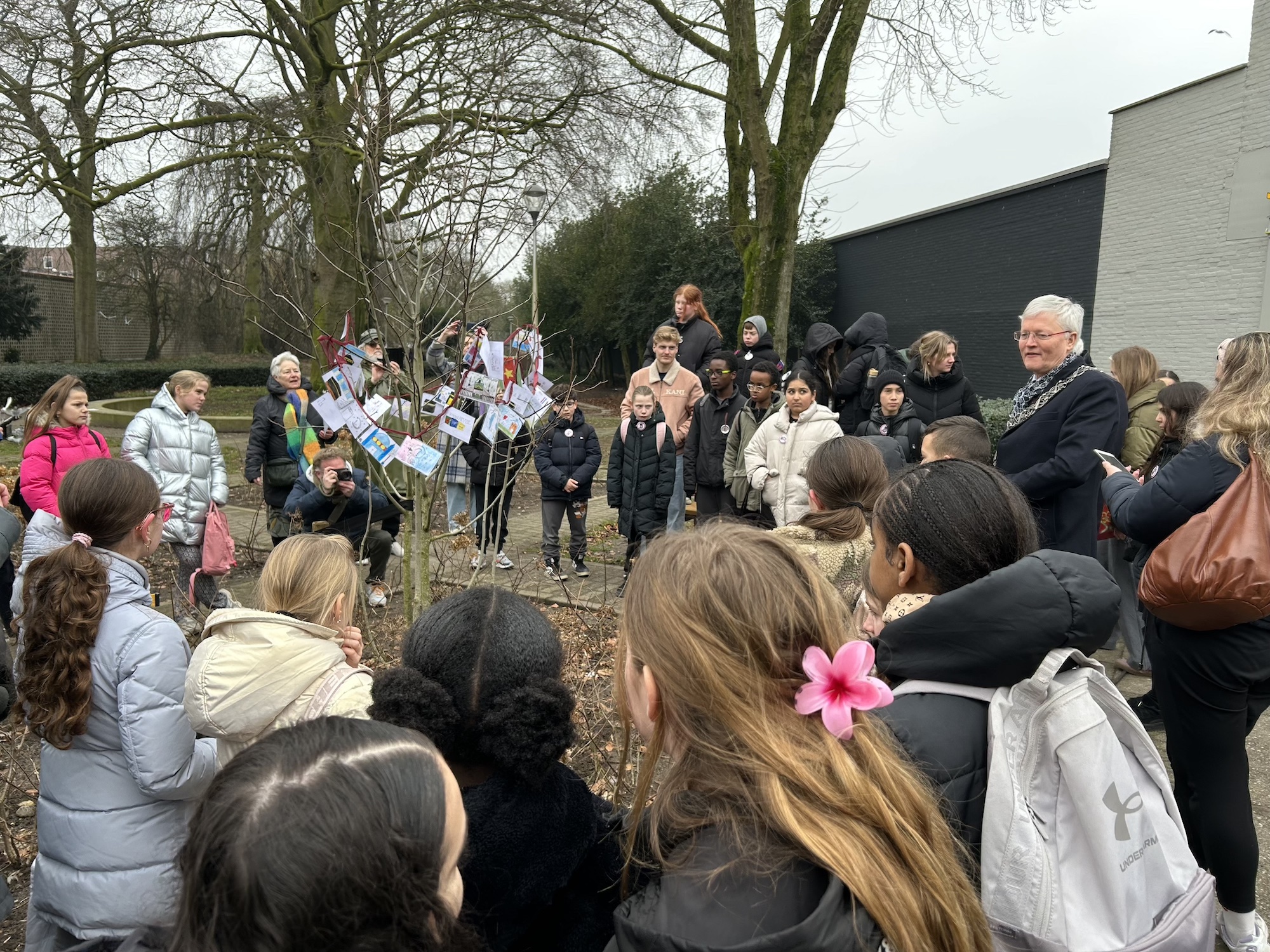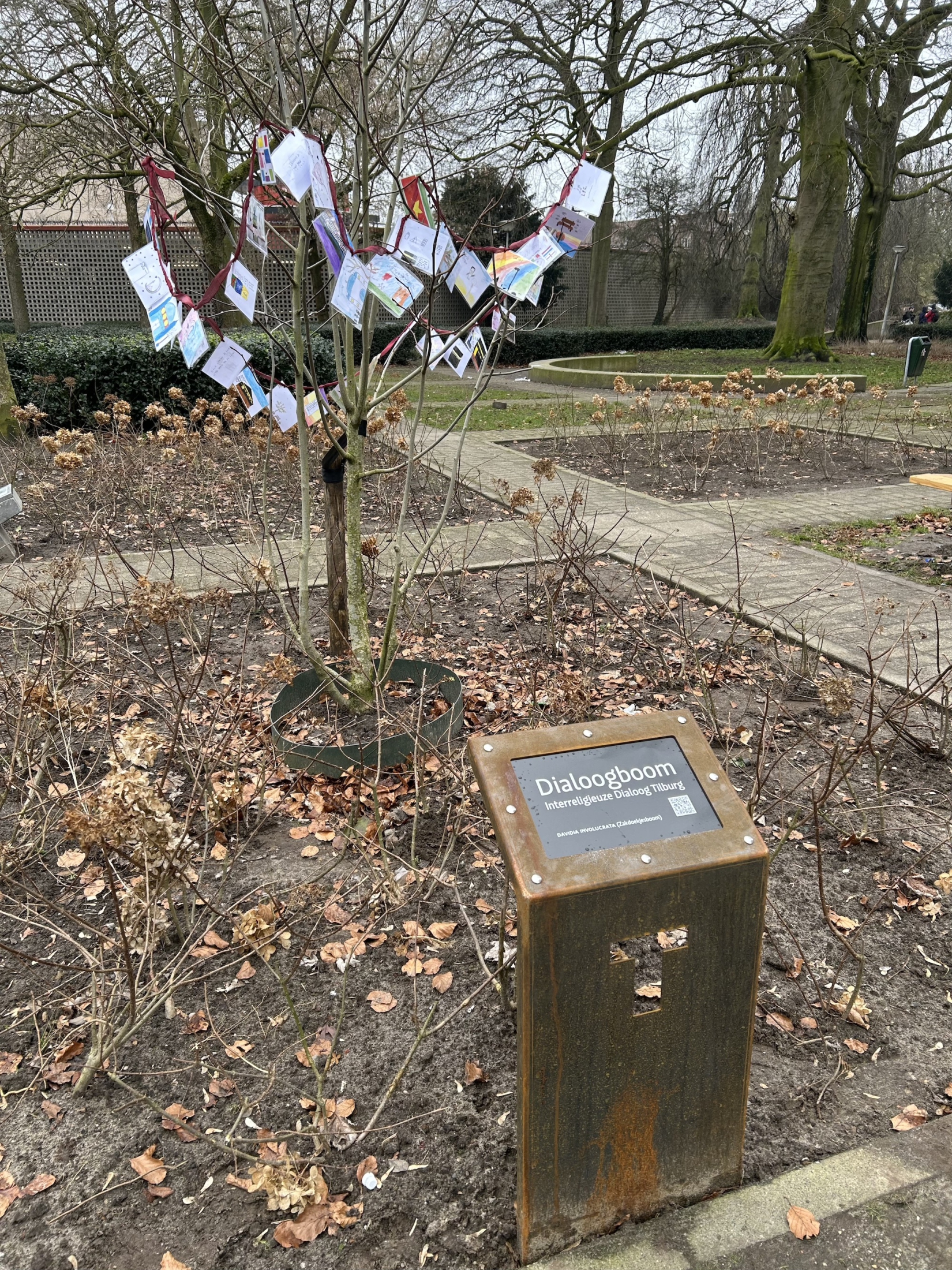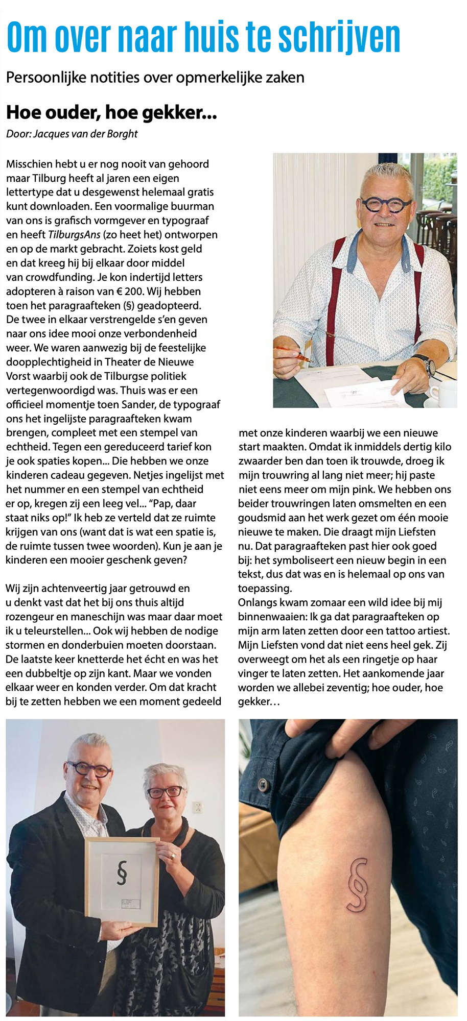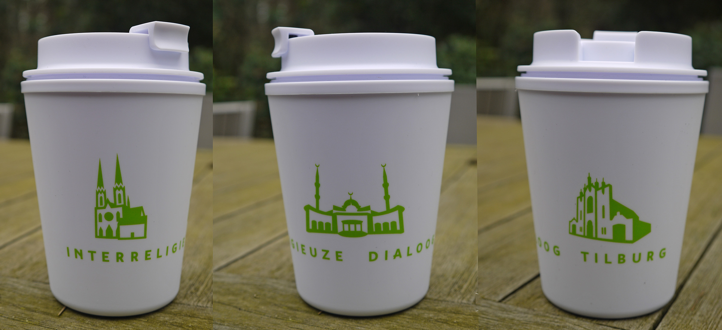 The TextielMuseum uses the icons of TilburgsAns in woven tissues. These tissues are sold in the TextielShop since february. In a week and a half they were sold out. A nice cushion was one of the products made with this fabric. Surprising were also the tiles with icons that were made for the bar Ome Ollie. And what to think of the macaroons by Cake 5 made for the carnival days on which the palace and the opstoet were printed, the sneakers with the kruikenzeiker, the carnival posters typeset in TilburgsAns, the tattoo of the section sign, and the website of Wijkkrant Tilburg. Icons as well as type of TilburgsAns was used for the Dialog Tree and the coffee mugs of the Interreligious Dialog Tilburg.